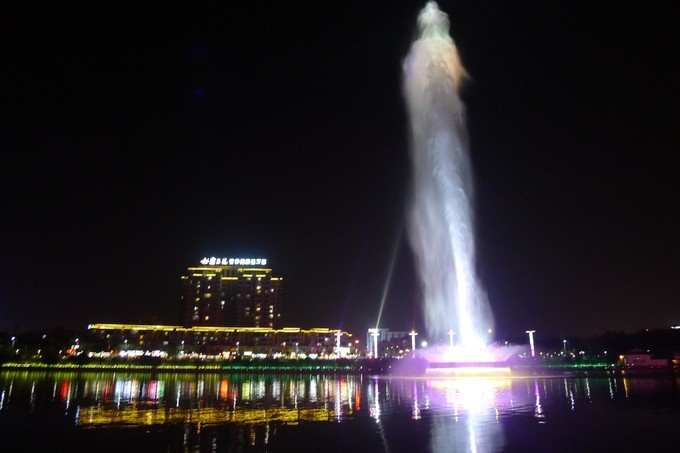 到了晚上,在經(jīng)過短暫到休息和品嘗過河源地道的地方美食后,我們又到有亞洲第一高音樂噴泉之稱的新豐江音樂噴泉,觀看音樂噴泉演出,在歡快愉悅的樂曲中,通過直噴、水簾、水浪、水松、內(nèi)拋、搖擺、編網(wǎng)等8種水型,不斷組合成數(shù)十個變幻莫測、絢麗多姿的噴泉景觀,有似流金溢彩、火樹銀花,有如孔雀開屏、彩虹飲澗;是水的畫、燈的詩,給人以美的享受。
